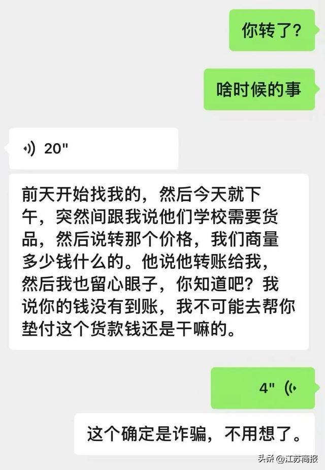 2025年12月5日18时左右,横林社区工作人员李凌豪通过微信接收到辖区某餐饮店老板张女士(化名)的紧急咨询。张女士详细叙述了情况:她接到一名自称是本地中学教师的陌生人的订餐请求,对方在沟通中突然提出学校还需额外购买一批高档和牛礼盒,并主动发送了一张伪造的网银转账截图,声称已向张女士的账户转账支付了款项,但要求她立即将相应资金转至一个所谓销售和牛的商家账户。李凌豪凭借工作经验,敏锐地察觉到此事存在诸多疑点,如转账截图的真实性不足且对方催促紧迫,他当即判断此为典型的诈骗行为,并明确告知张女士切勿轻信和操作。