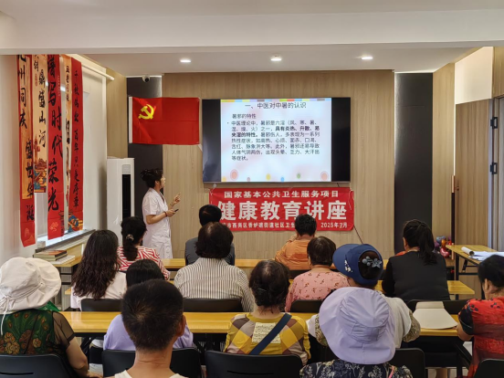 讲座中,卫生服务中心的中医医师结合夏季气候特点,从中医暑邪特性“天人相应”理念切入,用通俗易懂的语言讲解中暑的成因。针对老年人、慢性病患者等易感人群,医师重点演示了“藿香正气水外用擦涂”“人中穴急救按压”等实用方法,并提醒居民避免正午外出、及时补充淡盐水等日常注意事项。
